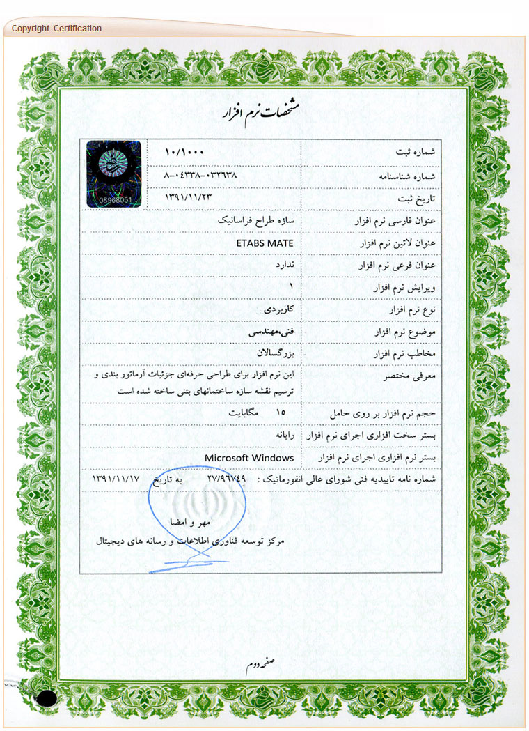 کلیه حقوق معنوی و مادی نرم افزار طی شماره ثبت 10/1000 و شماره شناسنامه 032638-04338-8 از مرکز توسعه فناوری اطلاعات و رسانه های دیجیتال وزارت فرهنگ و ارشاد اسلامی و نیز شماره شناسایی 204933 از شورای عالی انفورماتیک کشور تحت پوشش قانون "حمایت از حقوق پدیدآورندگان نرم افزارهای رایانه ای" مصوب 1379/10/4 مجلس شورای اسلامی و بخش چهار آیین نامه اجرایی قانون مذکور، میباشد و هرگونه کپی برداری و یا استفاده غیر مجاز از آن پیگرد قانونی خواهد داشت.