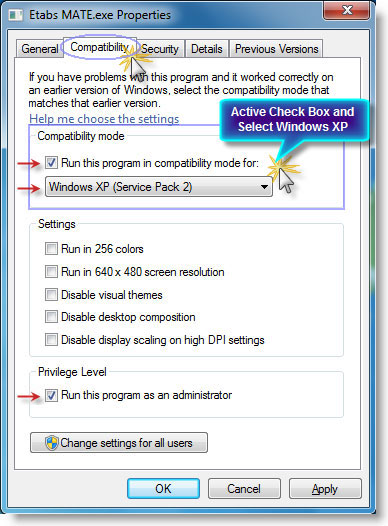 در صورتیکه از برخی نسخه های ارتقا نیافته ویندوز ویستا یا ویندوز 7 استفاده نمایید ممکن است این پیغام را مشاهده نمایید. (توصیه ما استفاده از ویندوز 7 نسخه Ultimate دارای Service Pack 1 میباشد.) برای جلوگیری از مشاهده این اخطار و بدست آوردن License ID نرم افزار خود شما میبایست Compatibility Mode نرم افزار را برای Windows XP تغییر دهید.