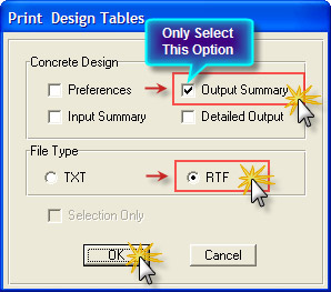 از منوی File گزینه Print Tables را انتخاب نمایید و بر روی گزینه Concrete Frame Design کلیک نمایید. پنجره ای بصورت زیر گشوده خواهد شد.