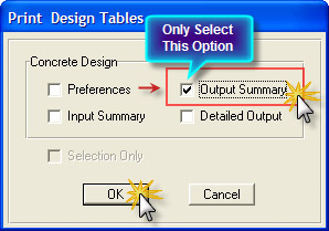 در پنجره باز شده تنها گزینه Output Summery را انتخاب نمایید و بقیه گزینه ها را از حالت انتخاب خارج نمایید و برروی OK کلیک نمایید.