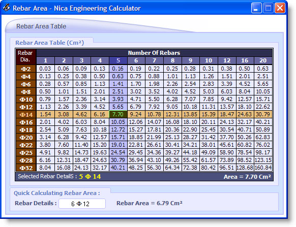 • Concrete Column Min/Max Rebar  ابزاری برای تعیین میزان فولاد مینیمم و ماکسیمم ستونهای بتنی براساس سطح مقطع آنها